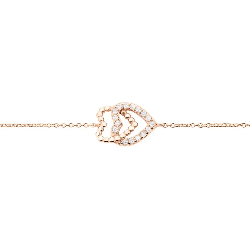 Bracelet Argent Rose 925/1000 Double C艙ur Effet Perle Oxydes De Zirconium 18.5cm
