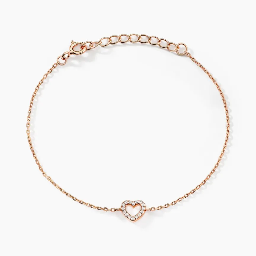 Bracelet Argent Rose 925/1000 C艙ur Penche Ajoure Pavage Oxydes De Zirconium 18.5cm