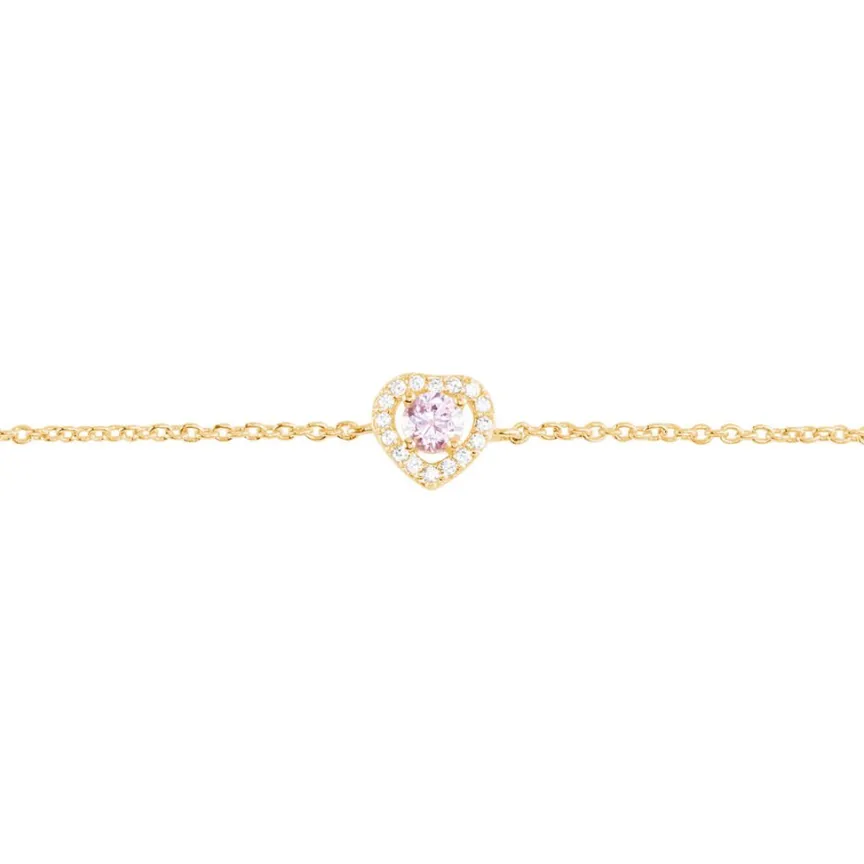 Bracelet Plaque Or Jaune C艙ur Oxyde De Zirconium Rose Entourage Oxydes De Zirconium 18cm