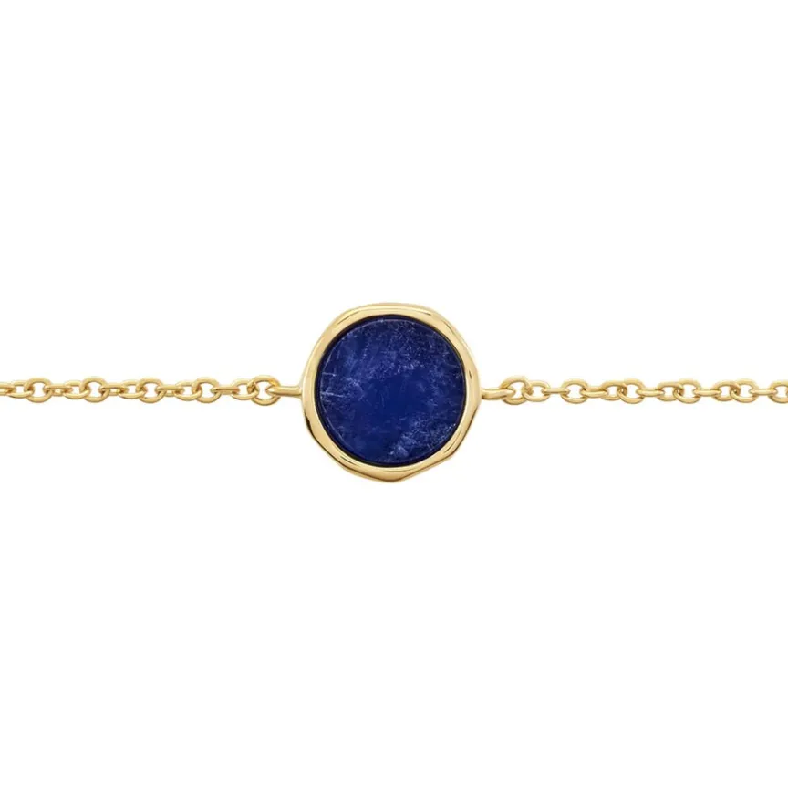 Bracelet Plaqué Or Pastille Sodalite Bleue Maille Forcat 18cm