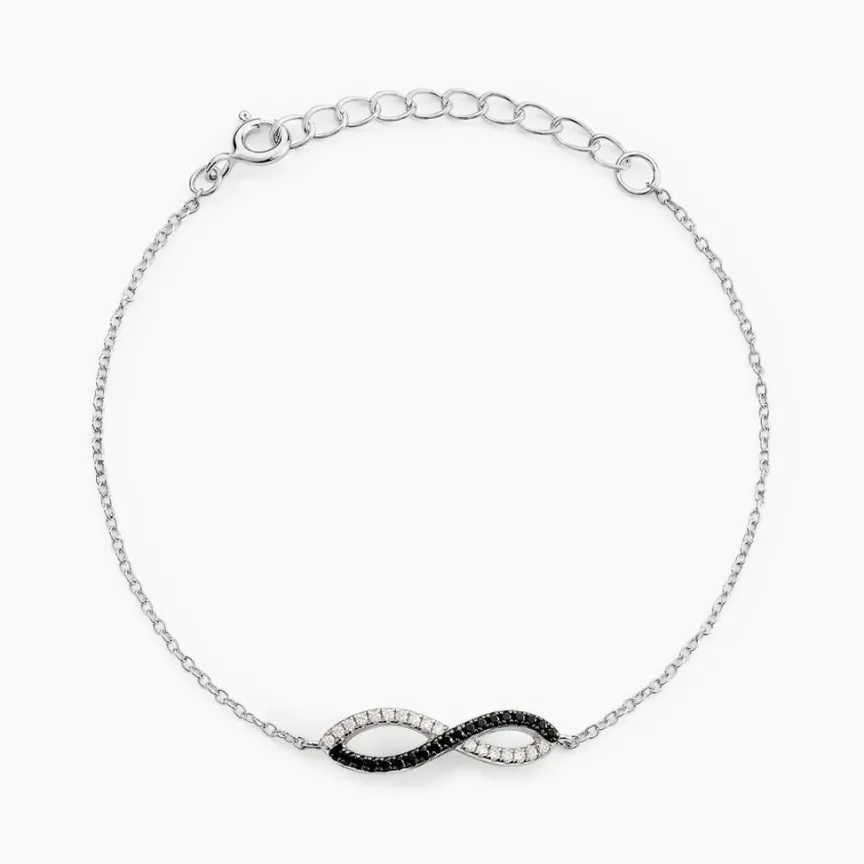 Bracelet Argent 925/1000 prudentia Vagues Oxydes De Zirconium Noirs Et Blancs 18.5cm