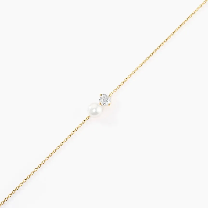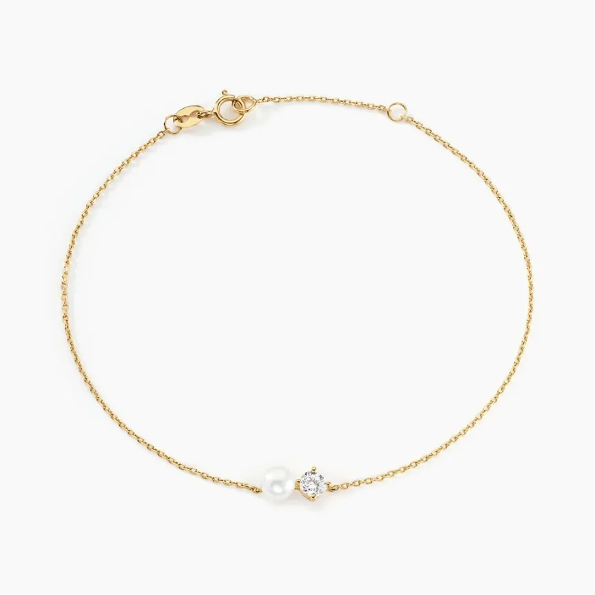 Bracelet Or Jaune 375/1000 Perle De Culture Blanche Bouton 4mm Et Oxyde De Zirconium Maille Forçat 16+2cm