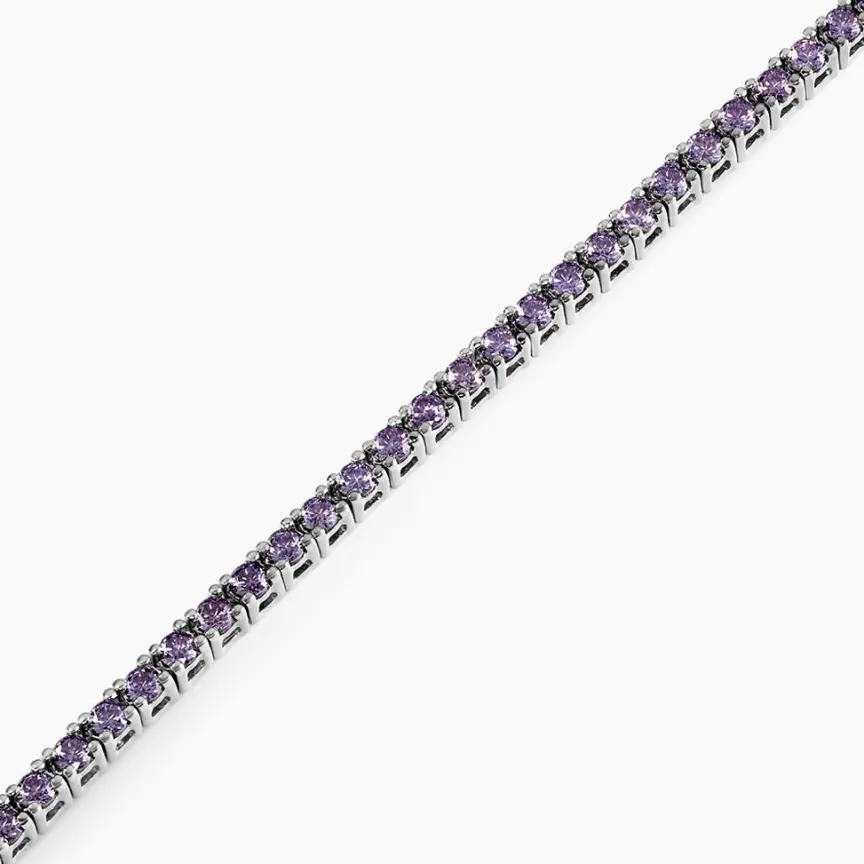 Bracelet Ajustable Argent Blanc 925/1000 Maille Tennis Oxydes De Zirconium Violet Serti 4 Griffes 2mm 17+2cm