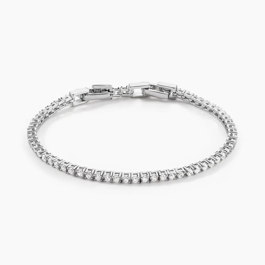 Bracelet Ajustable Argent Blanc 925/1000 Maille Tennis Oxydes De Zirconium Blanc Serti 4 Griffes 2mm 17+2cm