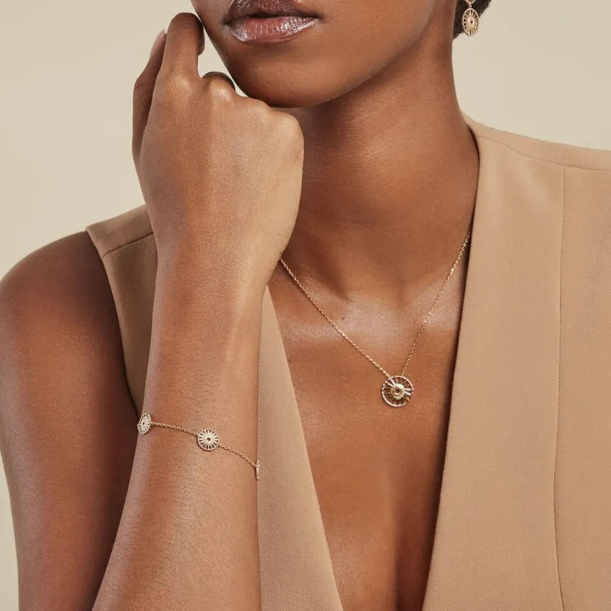 Bracelet Plaqué Or Jaune Motifs Soleil Maille Forçat 16+2cm