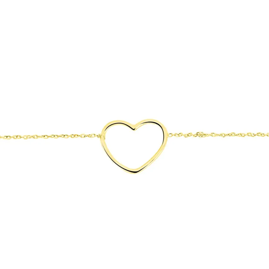 Bracelet Or Jaune 375/1000 Coeur Ajoure Maille Jaseron 18cm