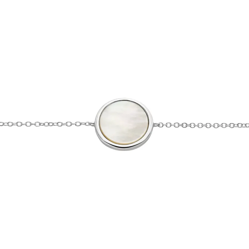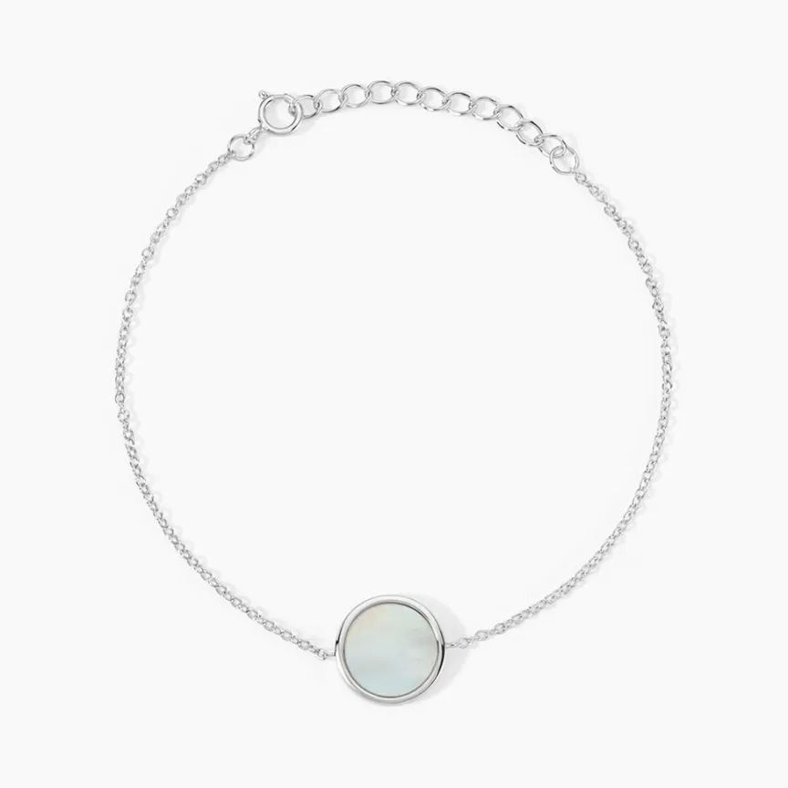 Bracelet Argent Blanc 925/1000 Cercle Nacre Blanc 0.73 Cts Largeur 1mm 19cm