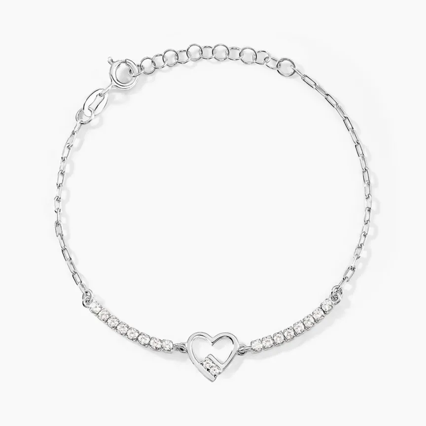 Bracelet Argent Blanc 925/1000 C艙ur Effet Riviere Oxydes De Zirconium Maille Forçat 16+3cm