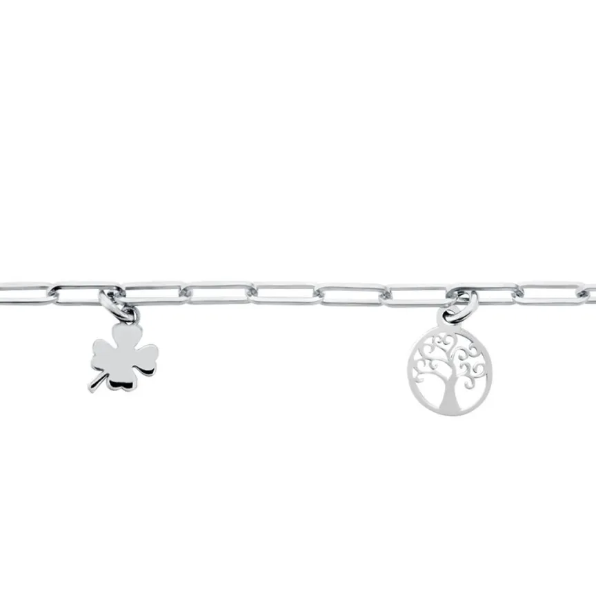 Bracelet Argent Blanc 925/1000 Pampilles Trefle Arbre De Vie C艙ur Carte Maille Cheval 18cm