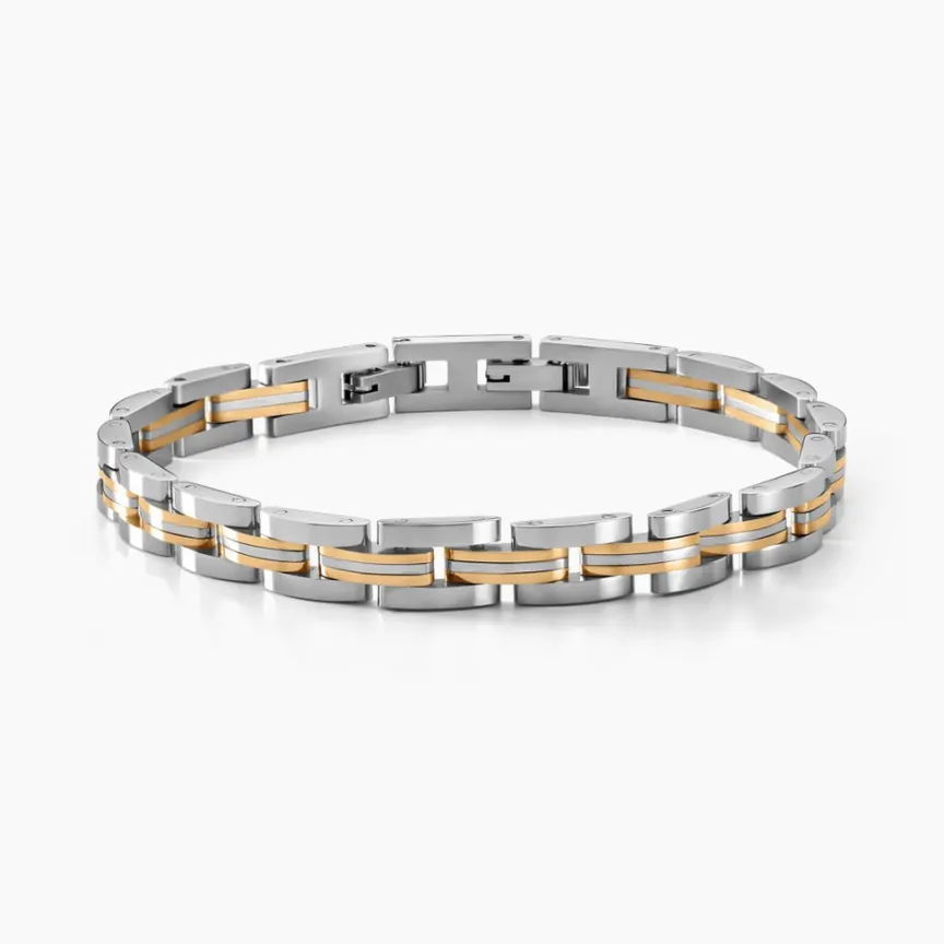 Bracelet Acier Inoxydable Blanc Ip Jaune 21cm