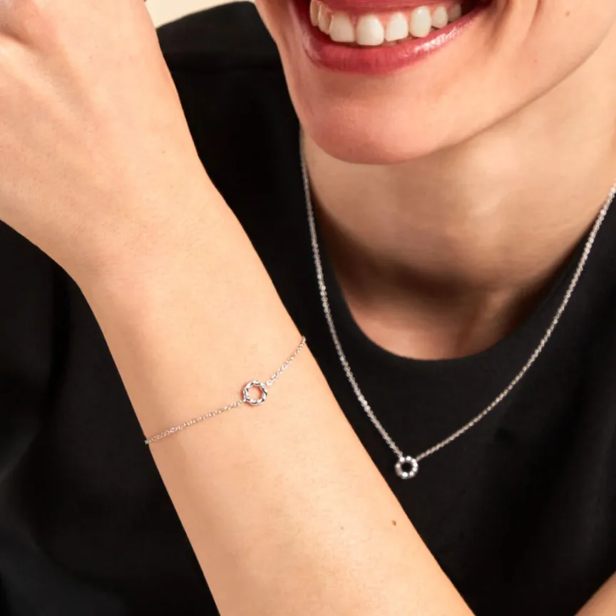 Bracelet Argent Blanc 925/1000 Cercle Effet Torsadé Maille Forçat 16+3cm