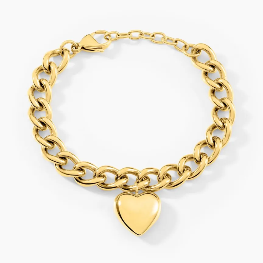 Bracelet Acier Jaune C艙ur Brillant Maille Forcat Largeur 9mm 19cm