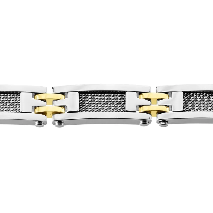 Bracelet Jourdan Acier Bicolore Dore / Blanc Mailles Plates Brossé 22cm