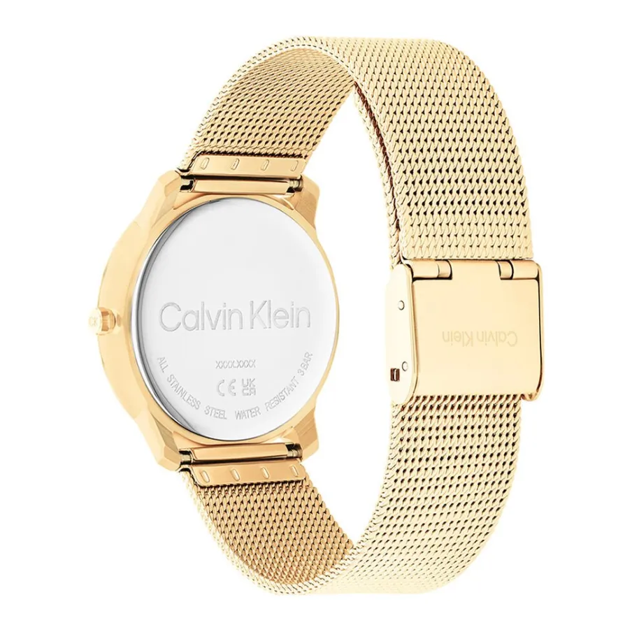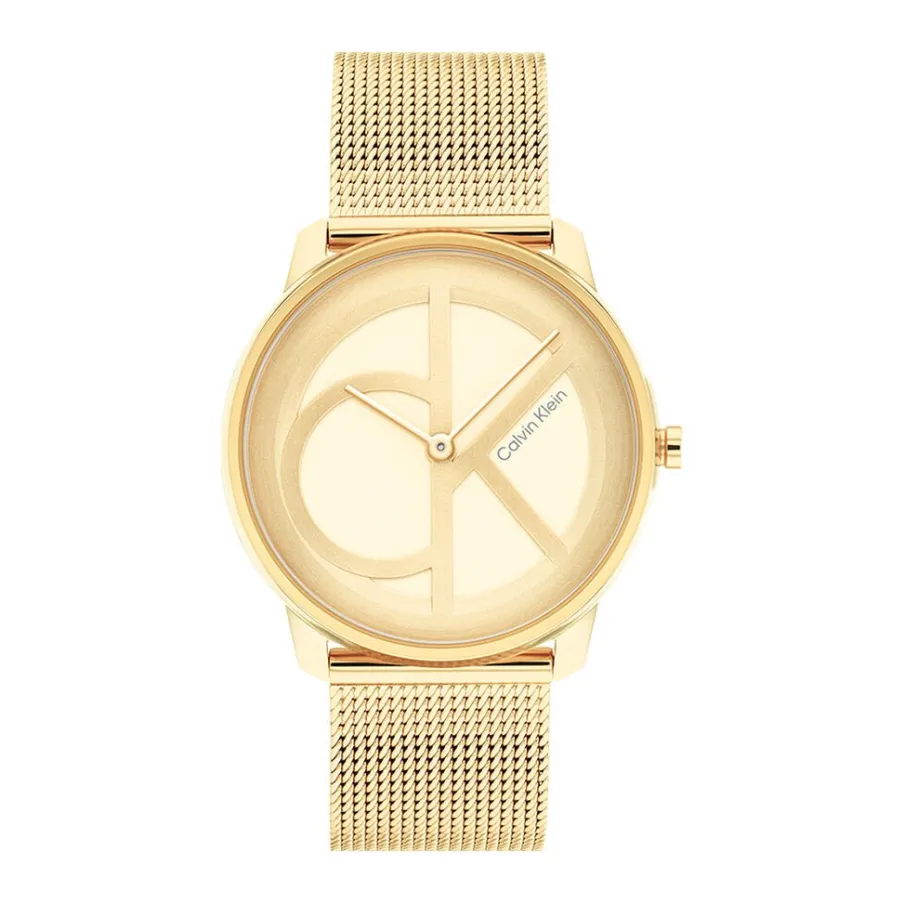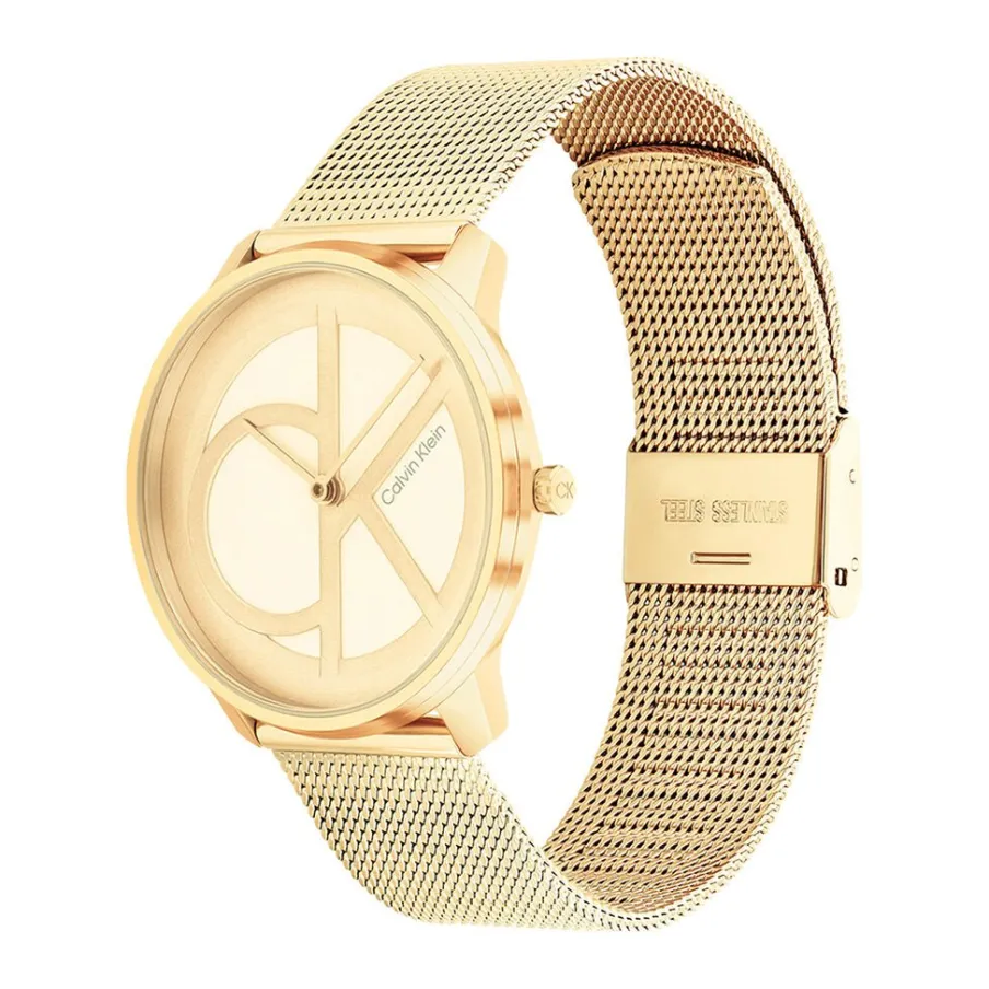 Montre Calvin Klein Iconic Mesh Acier Doré Ronde Quartz 35mm Fond Champagne Bracelet Maille Milanaise Acier Doré 25200034