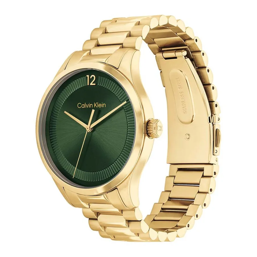 Montre Calvin Klein Iconic Acier Doré Ronde Quartz 40mm Fond Vert Bracelet Acier Doré 25200229