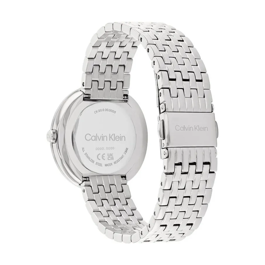 Montre Calvin Klein Twisted Bezel Boitier Acier Argente Rond 34mm Quartz Fond Gris Bracelet Acier Argente 25200320