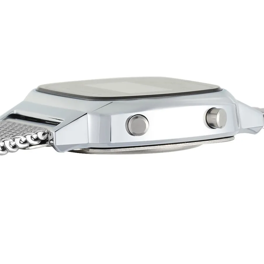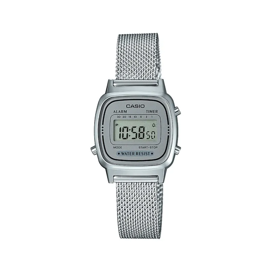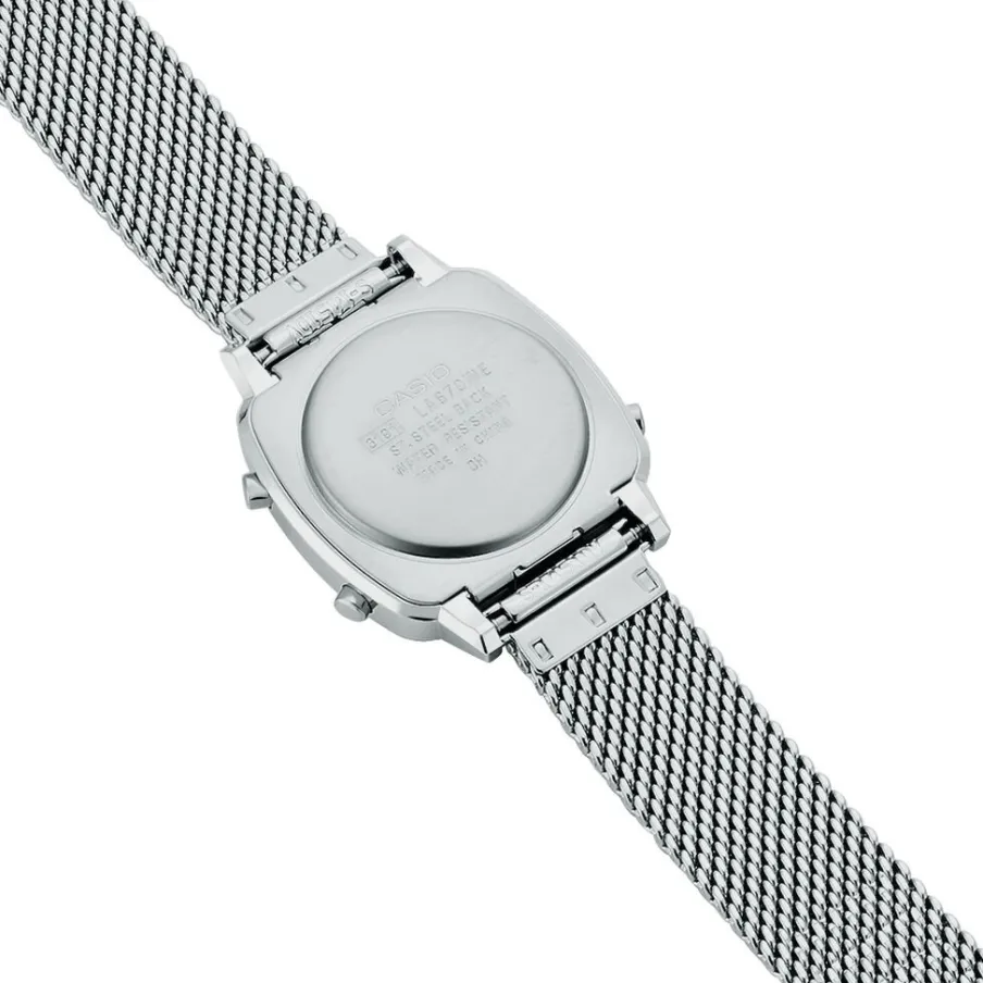 Montre Casio Collection Vintage Resine Blanc Carree Quartz 30mm Fond Argente Bracelet Acier Blanc La670wem-7ef