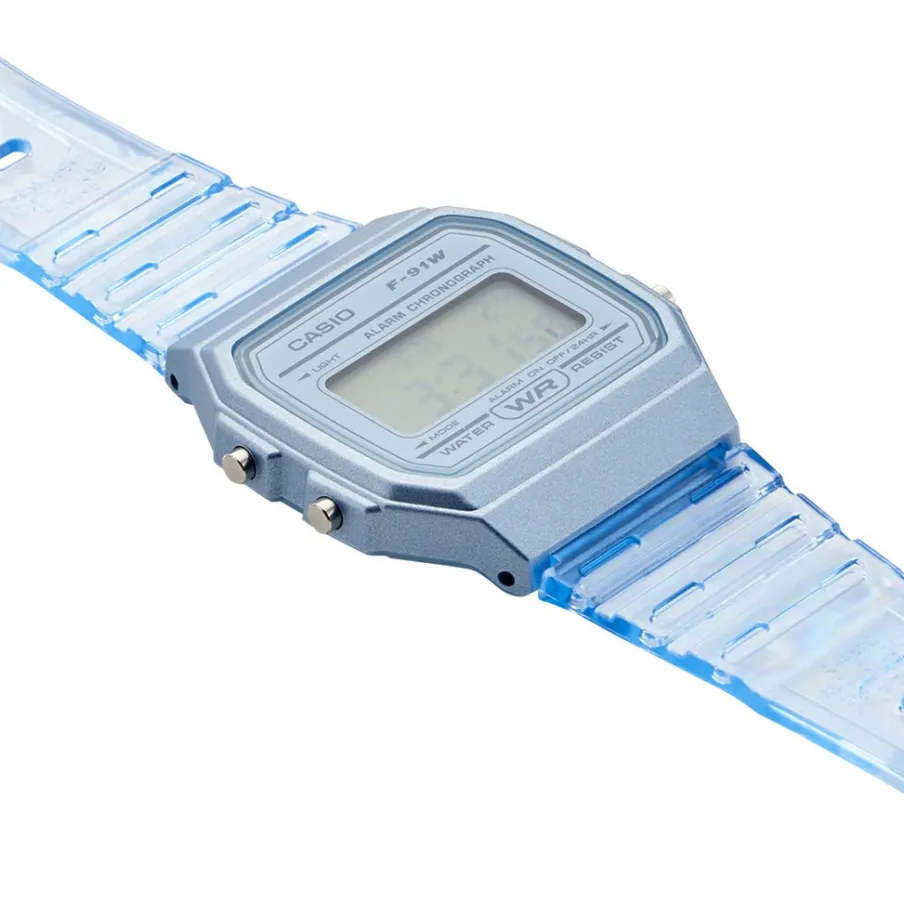 Montre Casio Collection Vintage Edgy Resine Bleu Rectangulaire Quartz Digitale 38.2mm Fond Bleu Bracelet Resine Bleu F-91ws-2ef
