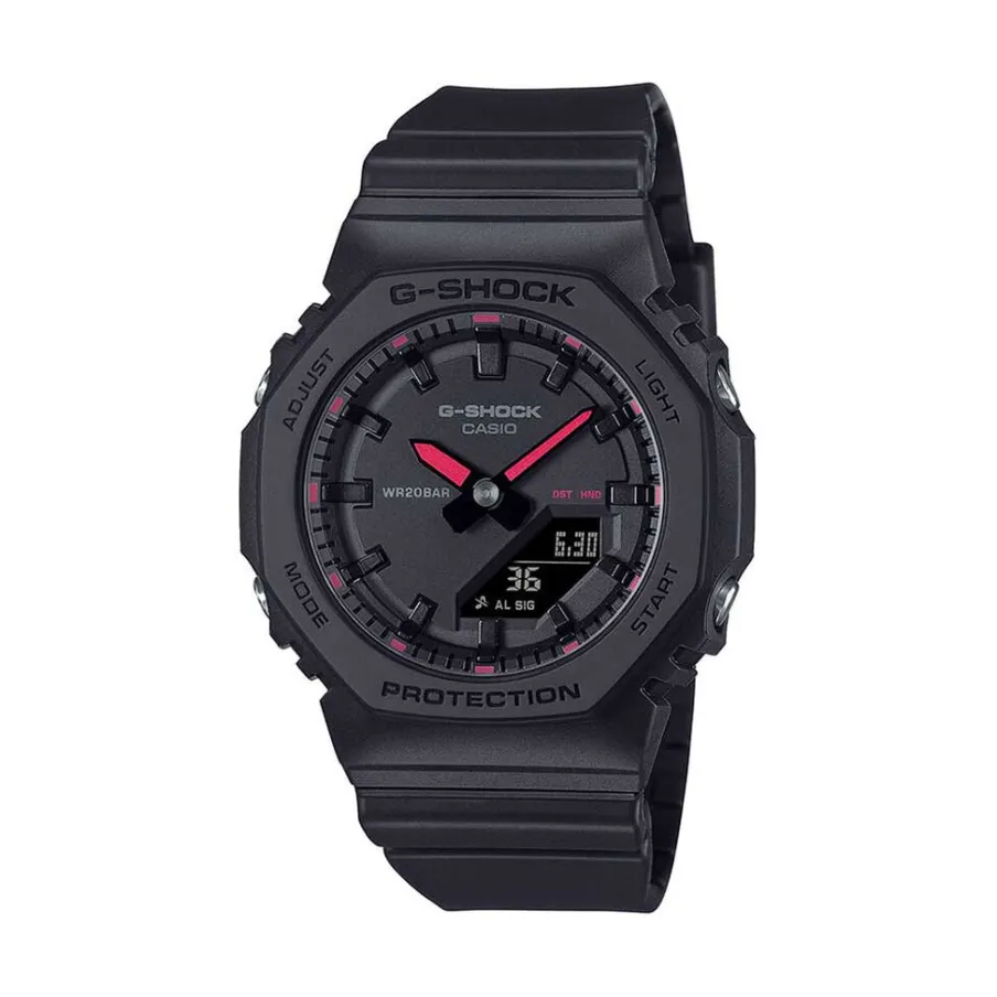 Montre Casio G-Shock Résine Noir Quartz Anadigital Multifonction Octogone 40,2Mm Fond Noir Index Rouge Bracelet Résine Noir Gma-P2100Sa-1A1Er