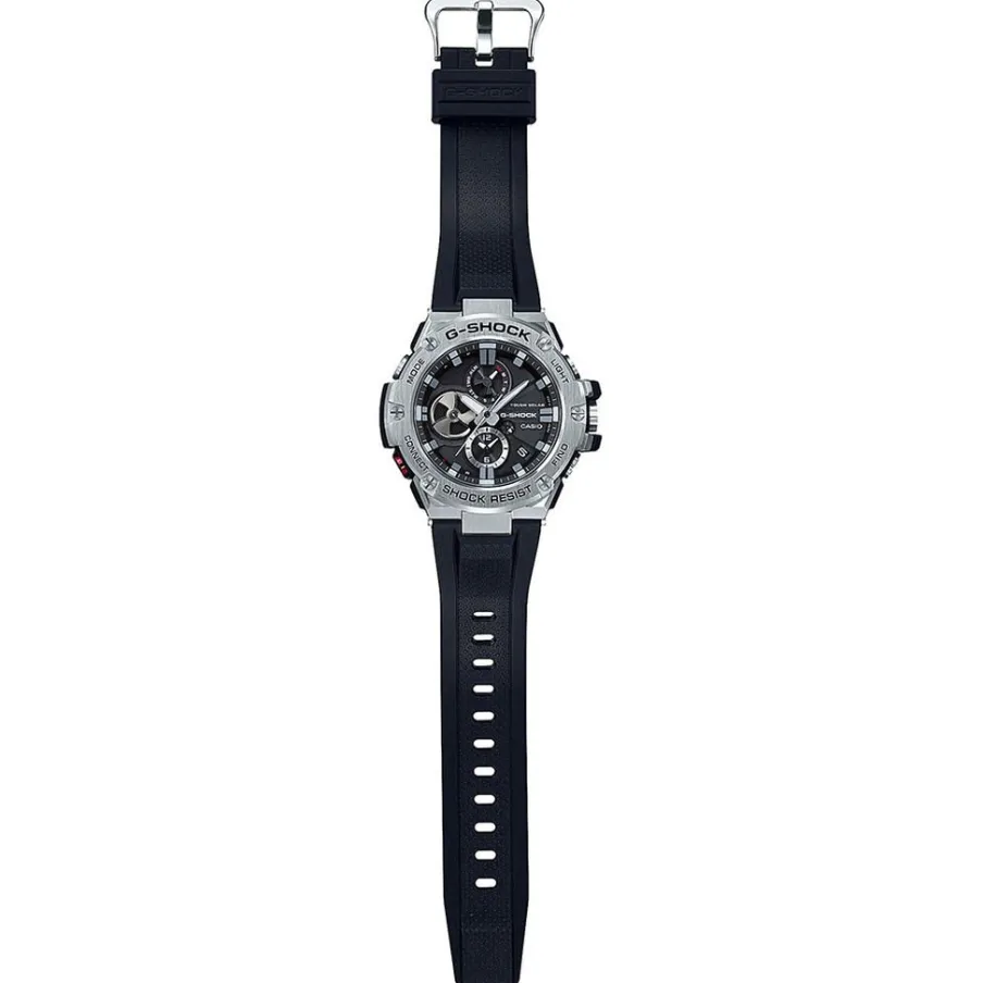 Montre G-shock Premium G-steel Acier Argenté Ronde Quartz 53.8mm Fond Noir Bracelet Résine Noir Gst-b100-1aer