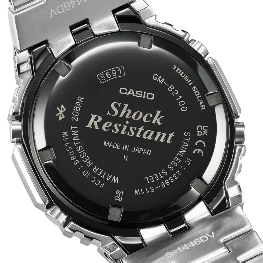 Montre Casio Acier Argente Ronde Quartz Solaire 44.4mm Fond Bleu Bracelet Acier Inoxydable Argente Gm-b2100ad-2aer