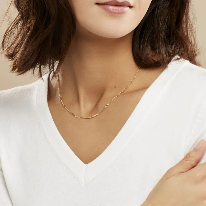 Collier Or Jaune 375/1000 Maille Singapour Evidée 1.9mm 65cm