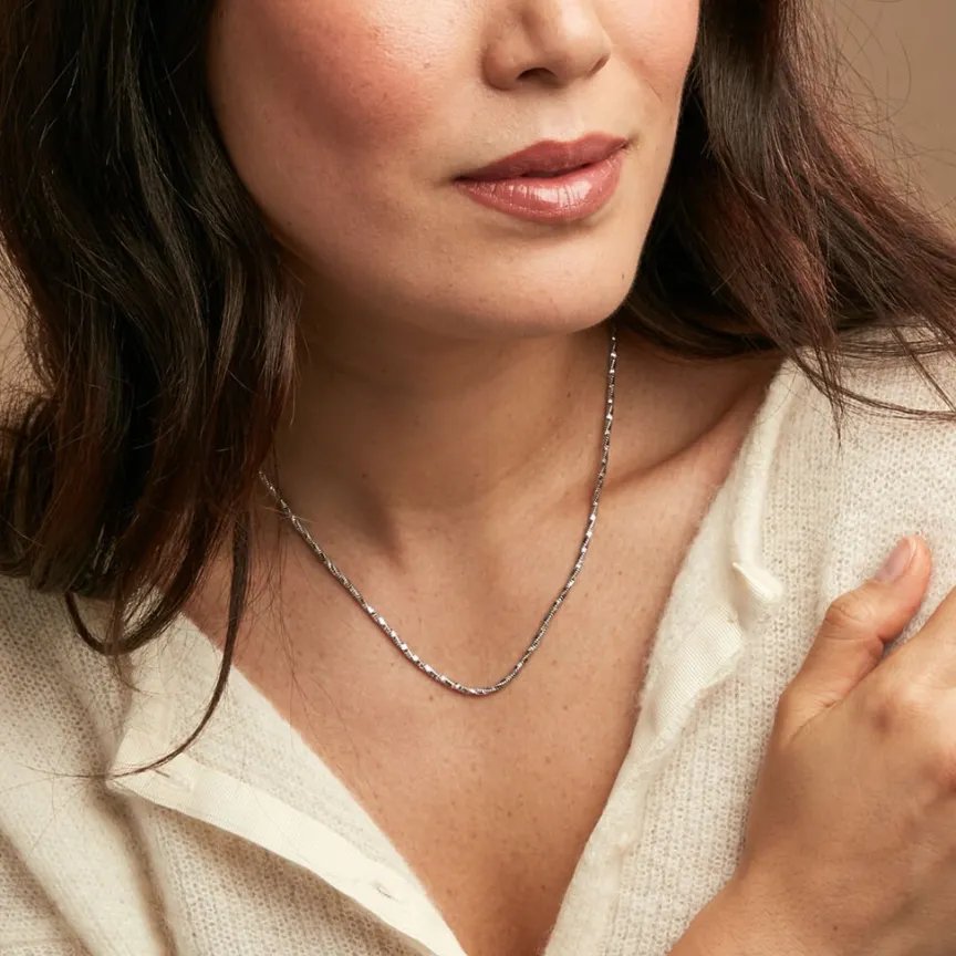 Chaîne Argent Blanc 925/1000 Maille Queue De Souris Torsadée Et Diamantée Largeur 2.15mm 45cm