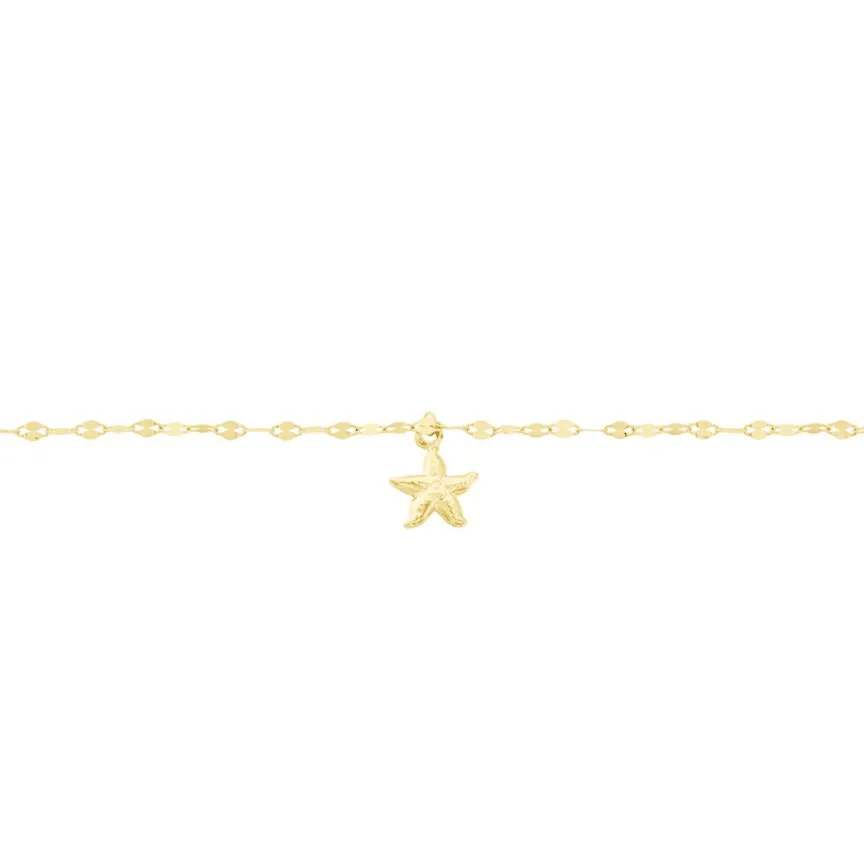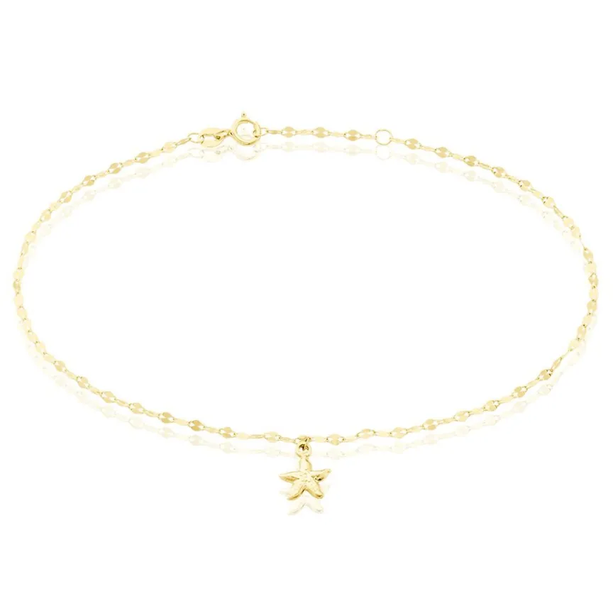 Chaine De Cheville Or Jaune 375/1000 Etoile De Mer Maille Lumina 22+2cm