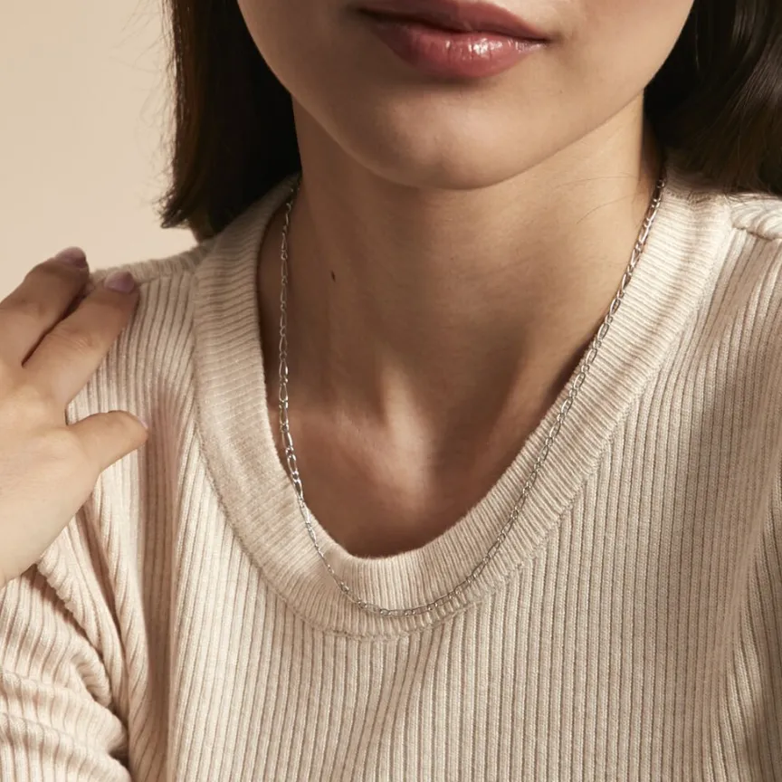 Collier Or Blanc 375/1000 Maille Alternée 1/1 2.5mm 50cm