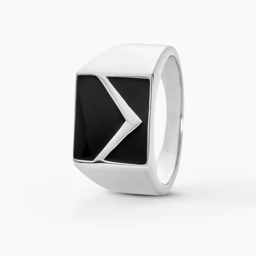 Chevalière Argent Blanc 925/1000 Forme Carré Email Noir