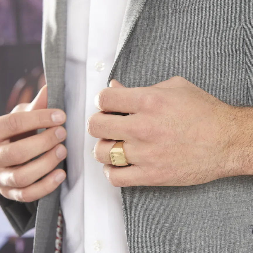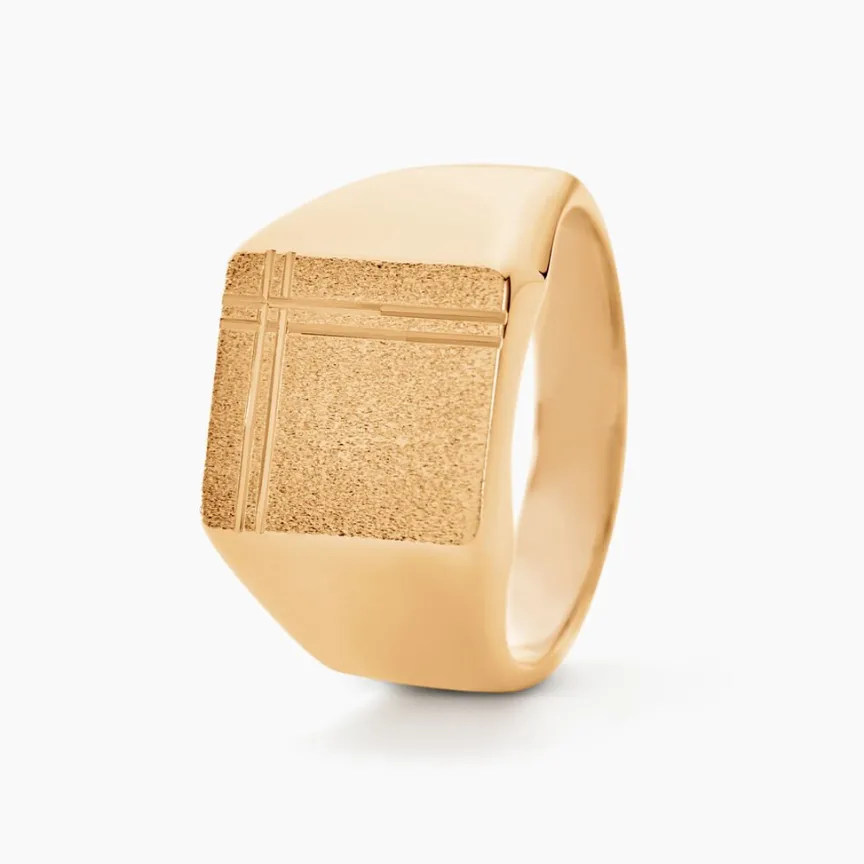 Chevaliere Plaqué Or Jaune Plateau Carre Cisele