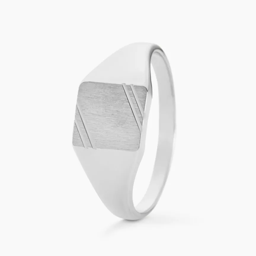 Chevaliere Argent Blanc 925/1000 Plateau Carre Cisele Pm