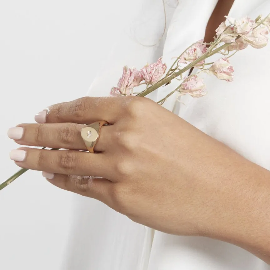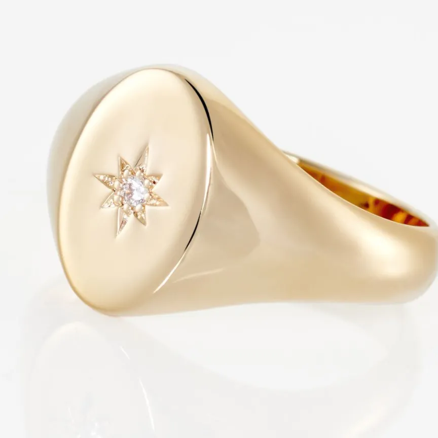 Chevaliere Plaque Or Jaune Plateau Ovale Motif Etoile Oxyde De Zirconium