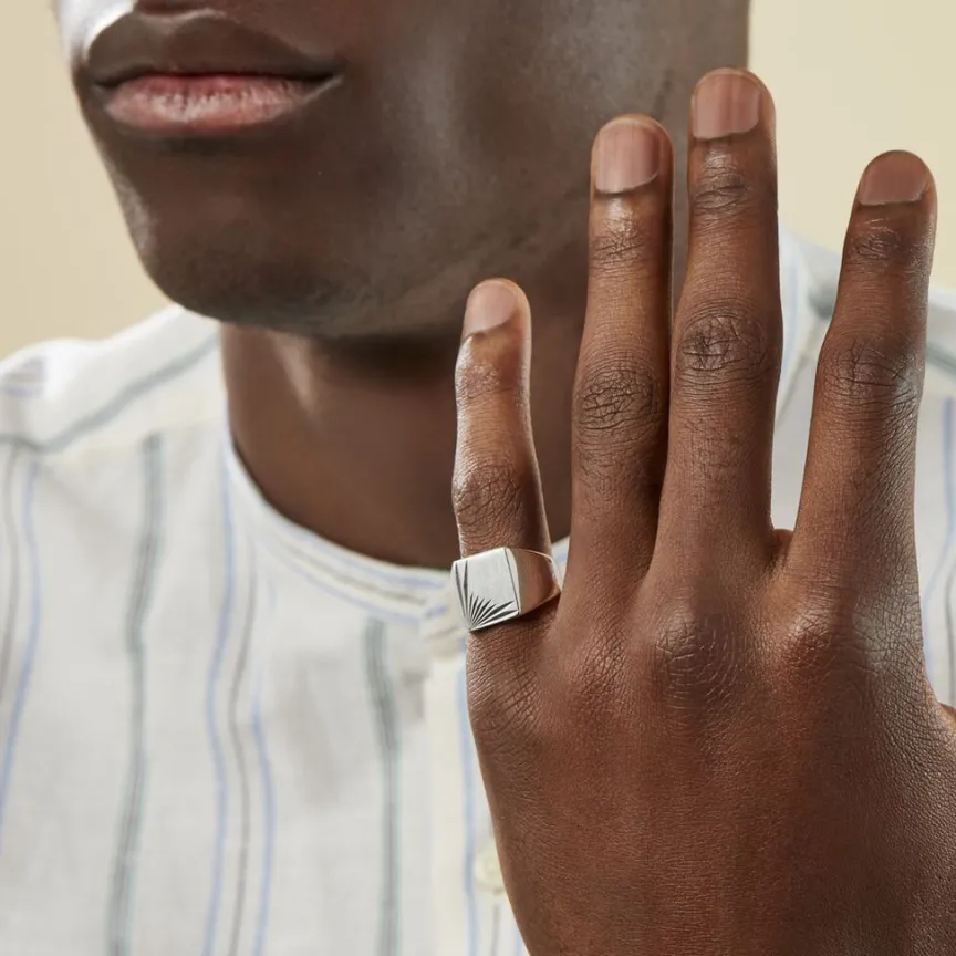 Chevaliere Argent Blanc 925/1000 Plateau Carre Cisele Soleil Gm