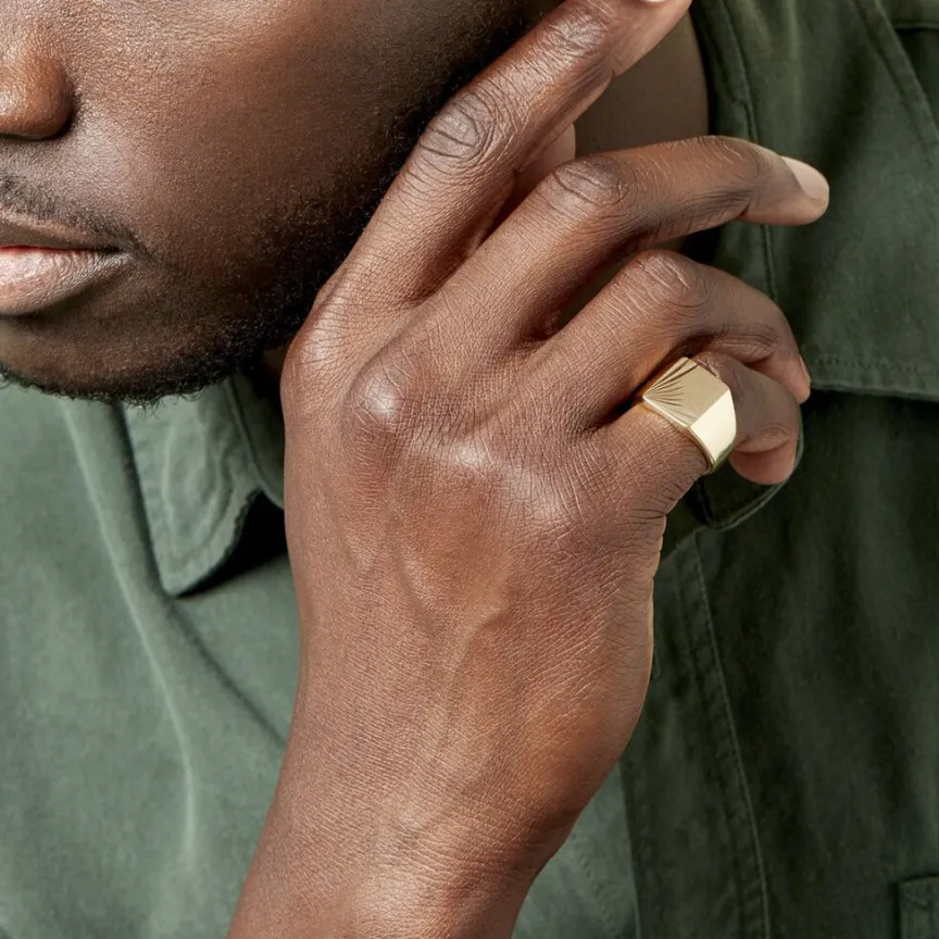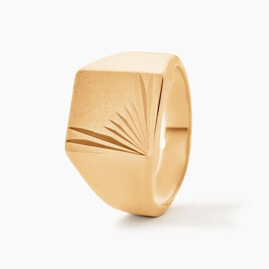 Chevaliere Plaqué Or Jaune Plateau Carre Lisse Soleil