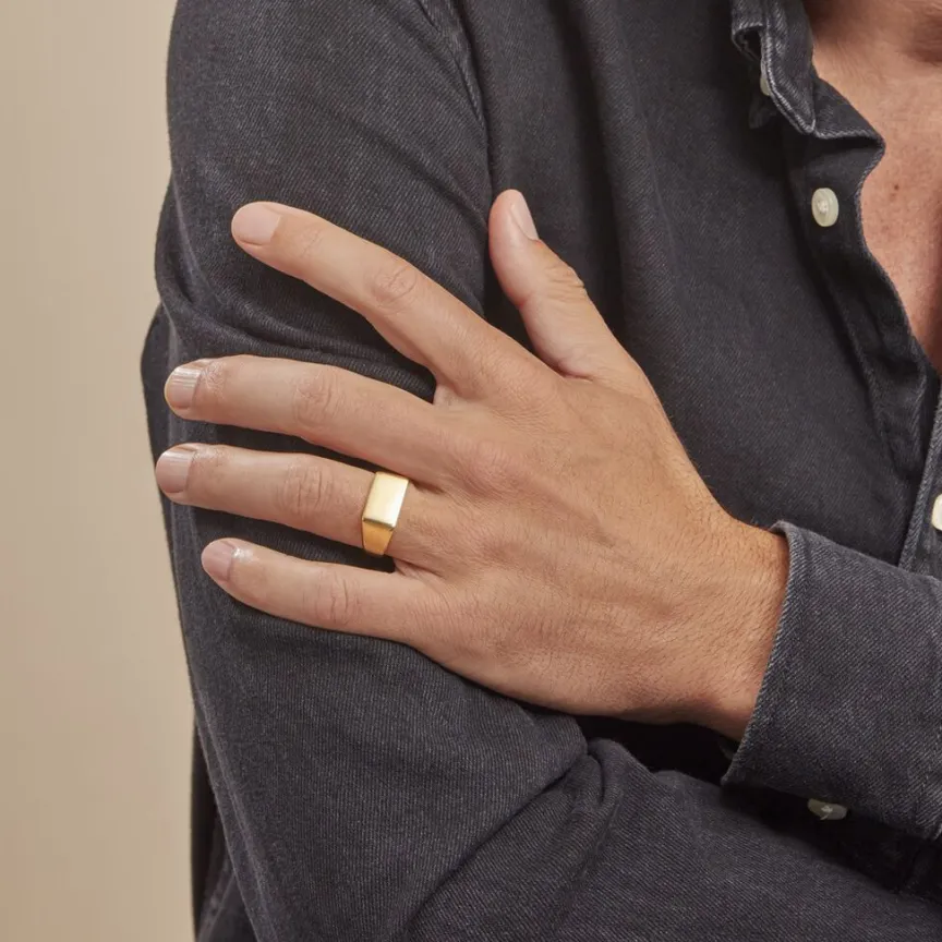 Chevaliere Acier Inoxydable Jaune Plateau Rectangle