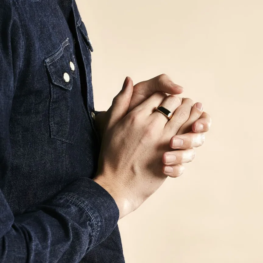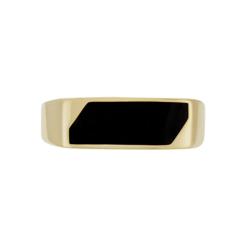 Chevaliere Plaque Or Jaune Plateau Rectangle Email Noir