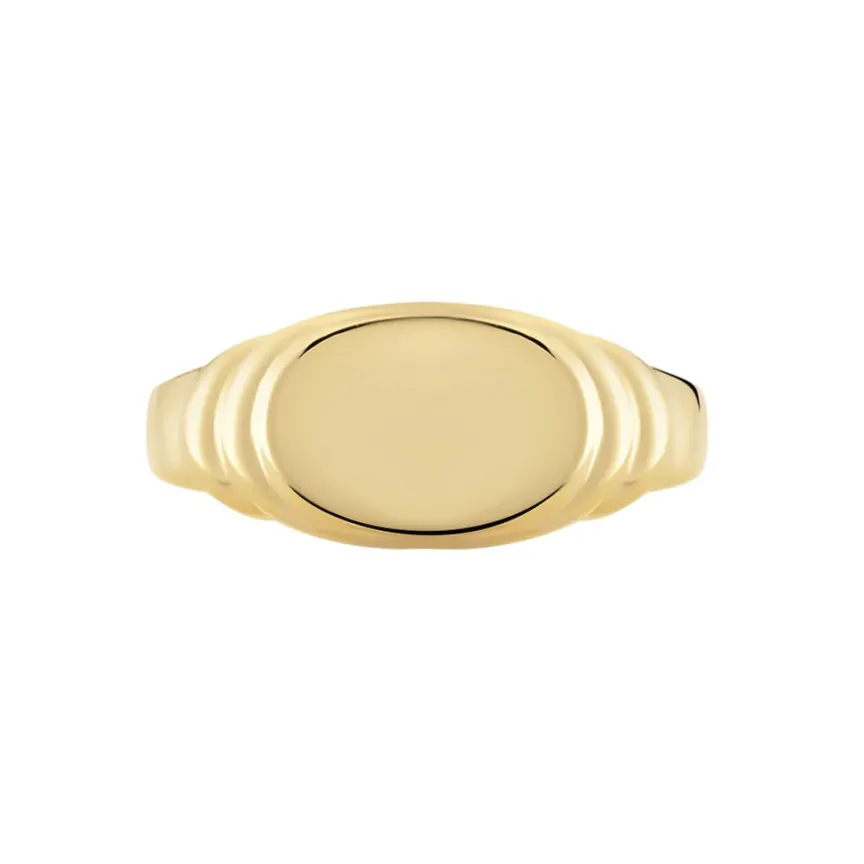 Chevalière Plaqué Or Jaune Ovale Contour Cannelure En Relief