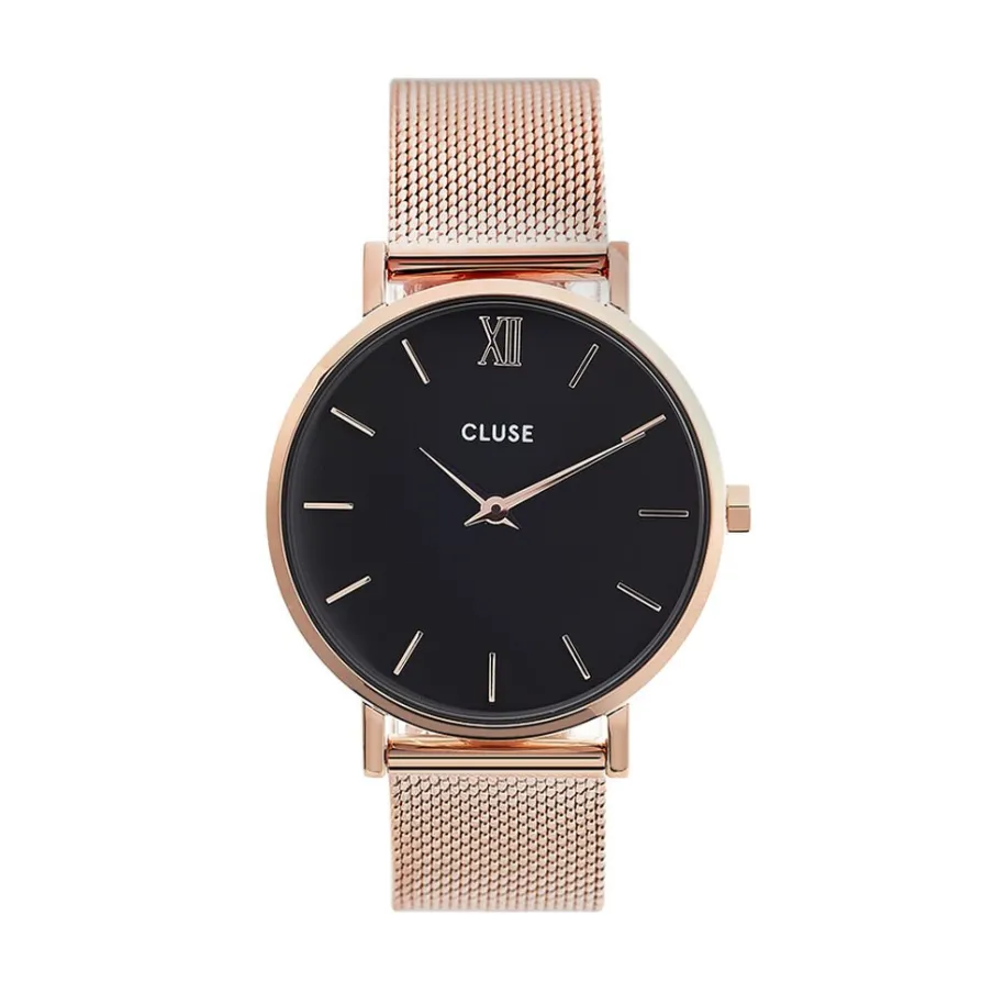 Montre Cluse Minuit Acier Dore Ronde Quartz 33mm Fond Noir Bracelet Acier Rose Cw0101203003