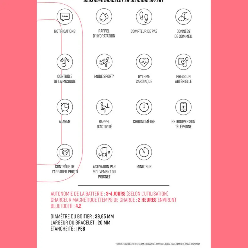 - Couleur du bracelet Rose