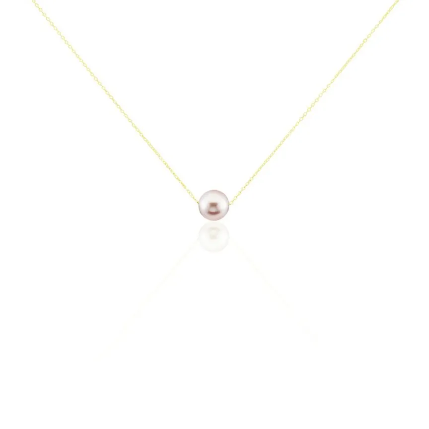 Collier Or Jaune 375/1000 Chaine Forçat Perle De Culture Rose Forme Ronde 9/9.5mm 40+2cm
