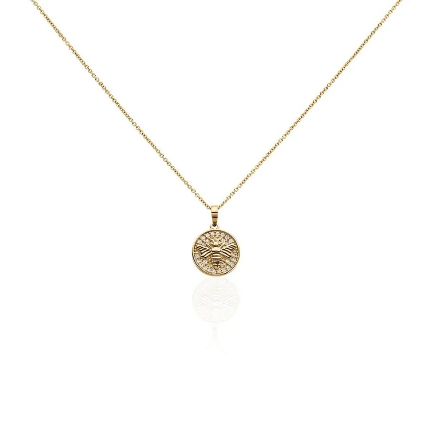 Collier Plaqué Or Jaune Pastille Abeille Pavage Oxydes De Zirconium Maille Forcat 42+3cm