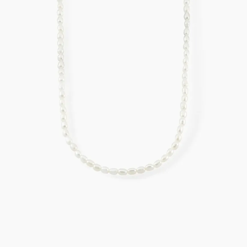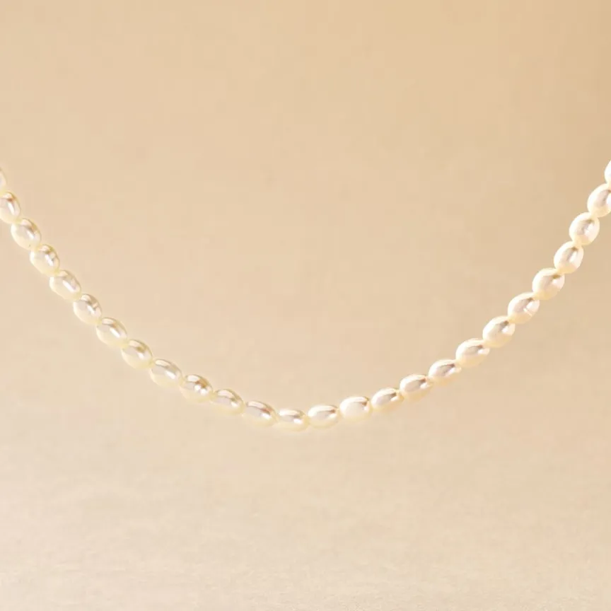 Collier Or Jaune 375/1000 Perles De Culture Grain De Riz Nacre 3/3.5mm 42cm