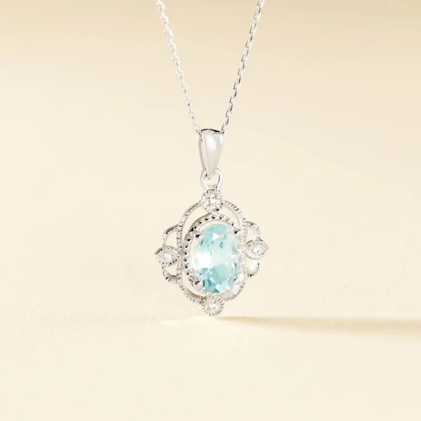 Collier Or Blanc 375/1000 Motif Arabesques Effet Perle Oxydes De Zirconium Et Topaze 42cm