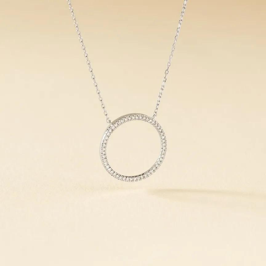 Collier Or Blanc 375/1000 Forme Cercle Pavage Diamants 50cm