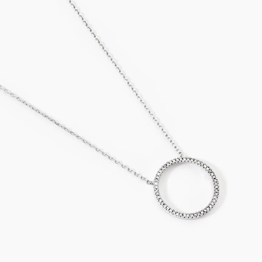 Collier Or Blanc 375/1000 Forme Cercle Pavage Diamants 42cm