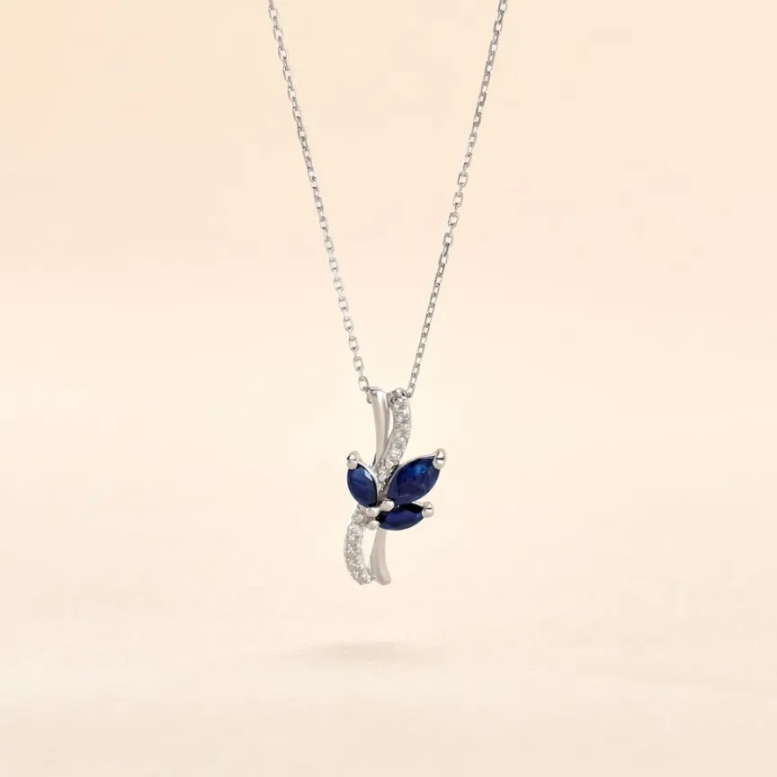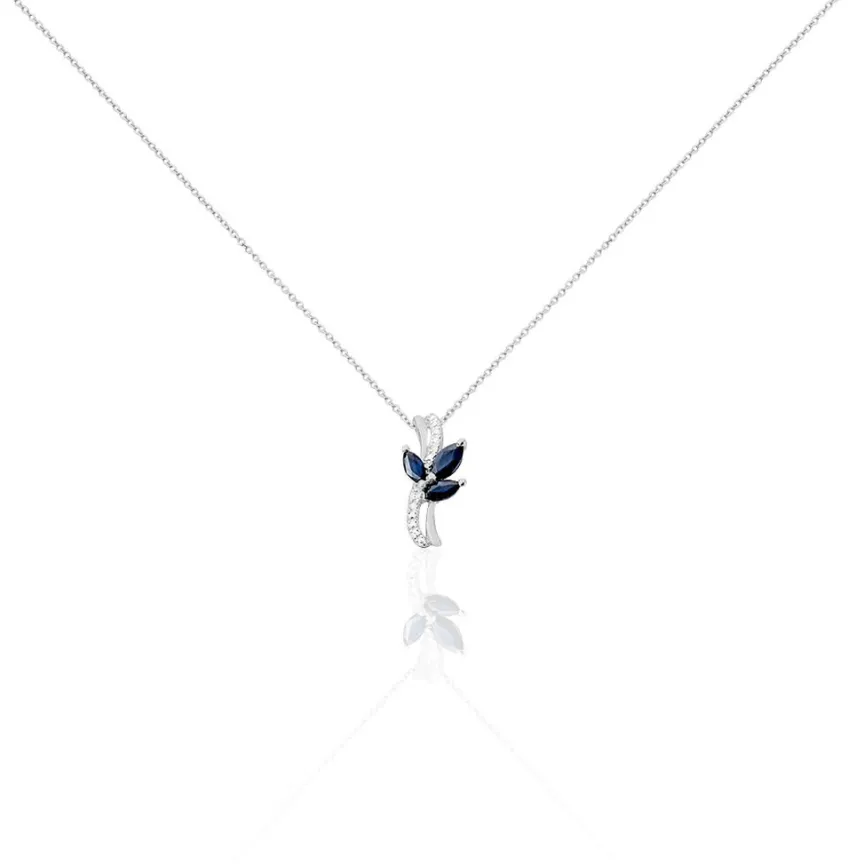 Collier Or Blanc 375/1000 Saphirs Forme Navette Et Diamants Blancs 42cm
