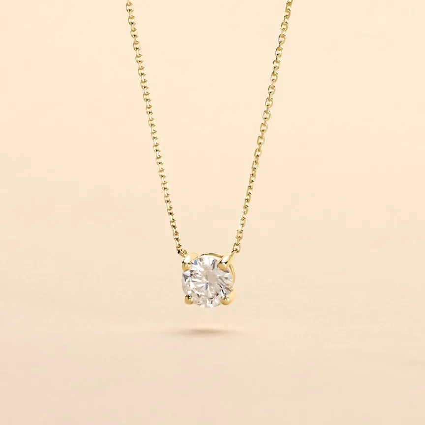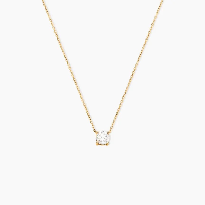 Collier Or Jaune 750/1000 Solitaire Diamant Synthetique 0.70cts 45cm