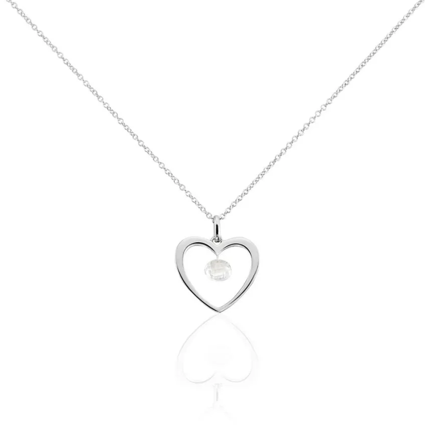 Collier Argent Blanc 925/1000 C艙ur Oxydes De Zirconium Percés Maille Forçat 45cm