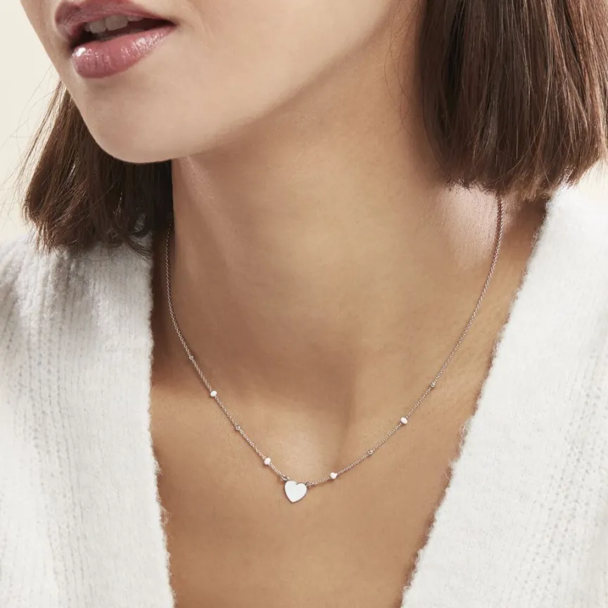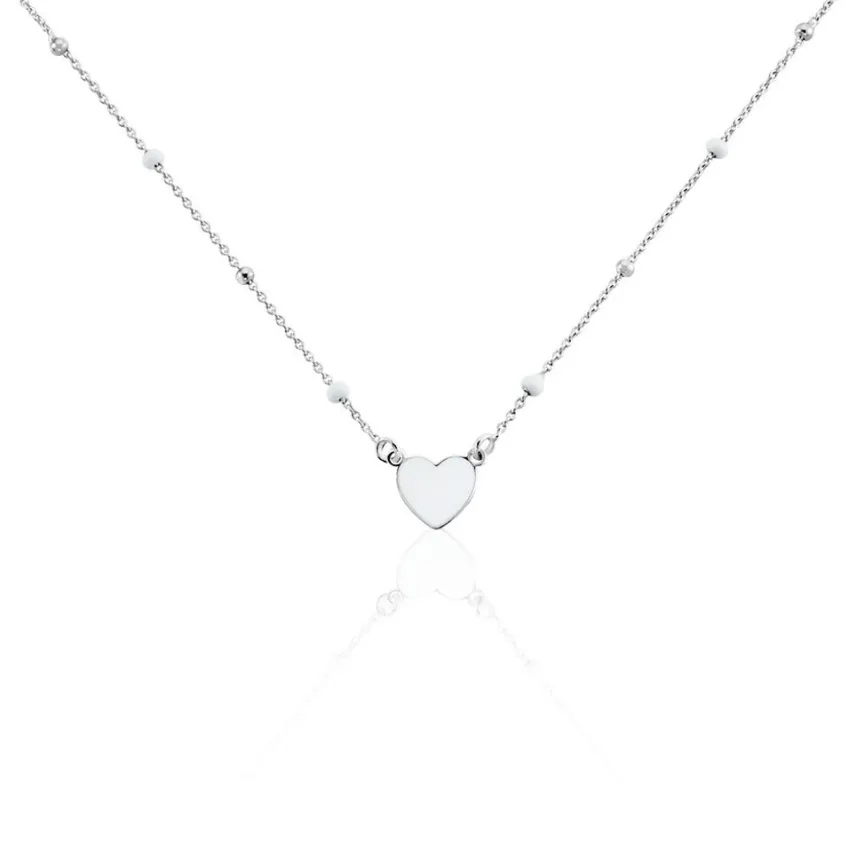 Collier Argent Blanc 925/1000 C艙ur Email Blanc Maille Jaseron 45cm